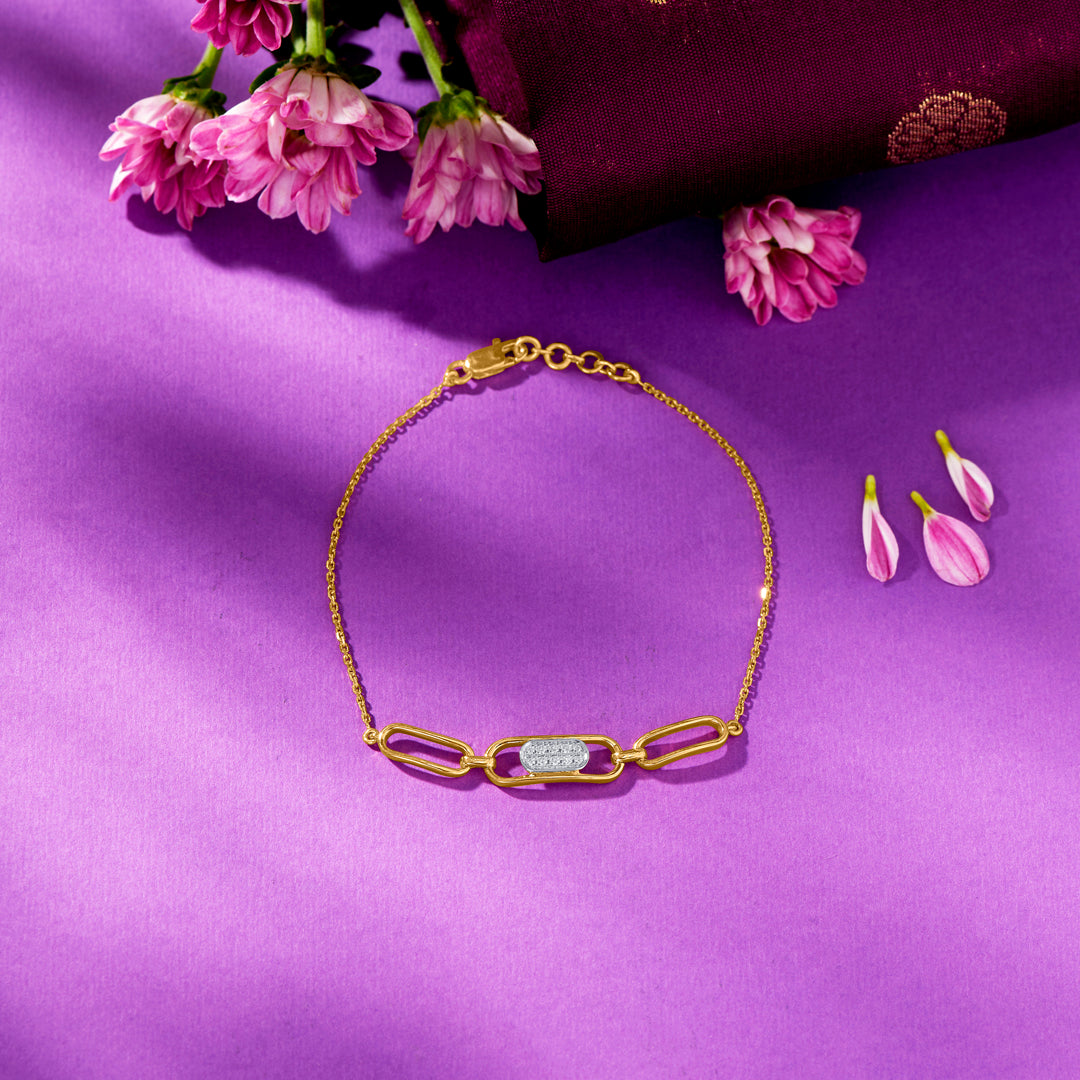 Check out our Gold & Diamond Charm Bracelet, perfect for every woman. With BIS-certified purity, it's ideal for daily wear or as a special gift. Great for birthdays, anniversaries, or Rakshabandhan, this ring is made to be treasured. It's versatile enough for festive and casual looks, adding elegance to any outfit. You'll receive it in secure, tamper-proof packaging, ensuring safety and peace of mind. Additionally, it comes with a lifetime warranty and a convenient buyback policy at our stores across India, making it the perfect thoughtful gift.