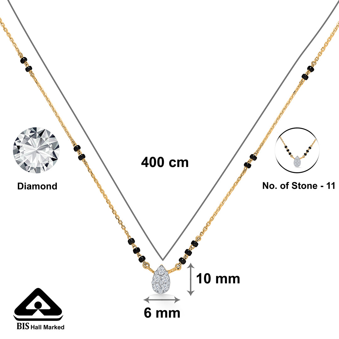 Check out our 18 Karat Gold & Diamond Modern Mangalsutra, perfect for every woman. It's ideal for daily wear or as a special gift. Great for birthdays, and anniversaries, this ring is made to be treasured. It's versatile enough for festive and casual looks, adding elegance to any outfit. You'll receive it in secure, tamper-proof packaging, ensuring safety and peace of mind. Additionally, it comes with a lifetime warranty and a convenient buyback policy at our stores across India, making it the perfect thoughtful gift.