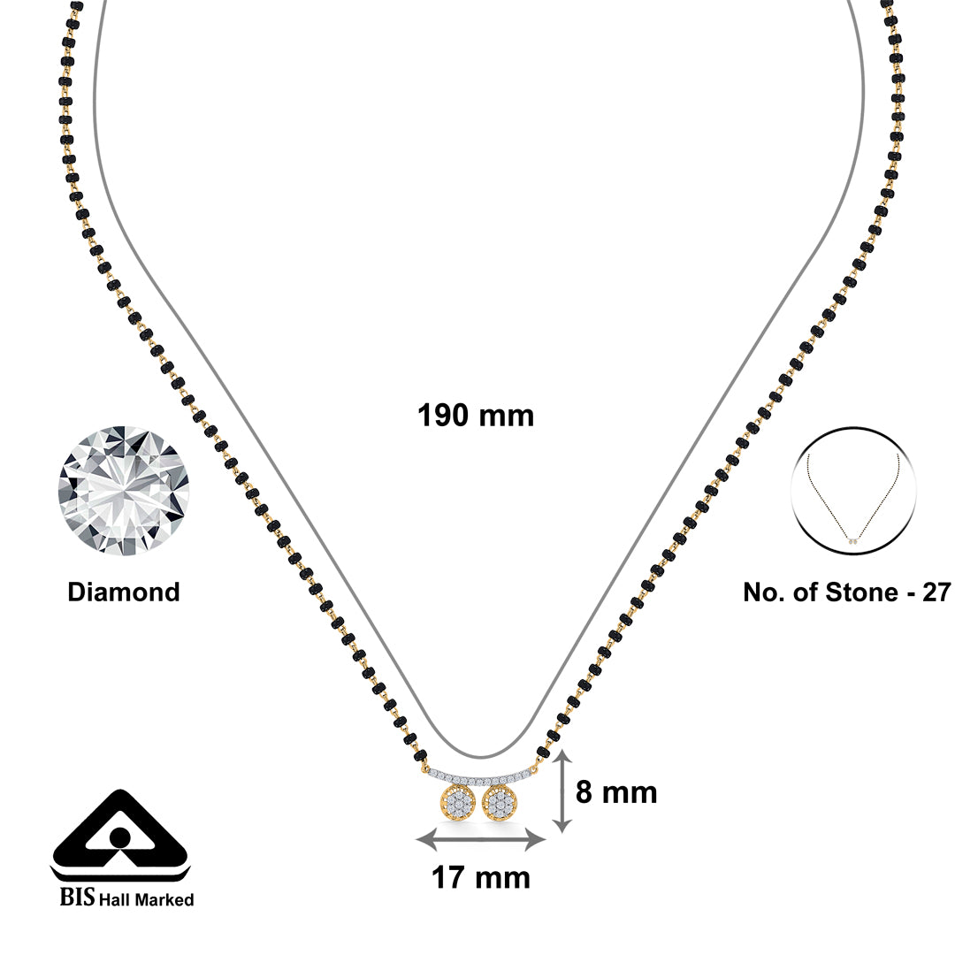 Check out our 18 Karat Gold & Diamond mangalsutra, perfect for every woman. With BIS-certified purity and adorned with VVS-FG Certified clarity diamonds, it's ideal for daily wear or as a special gift. Great for birthdays, and anniversaries, this Mangalsutra is made to be treasured. It's versatile enough for festive and casual looks, adding elegance to any outfit. You'll receive it in secure, tamper-proof packaging, ensuring safety and peace of mind. Additionally, it comes with a lifetime warranty and a convenient buyback policy at our stores across India, making it the perfect thoughtful gift.