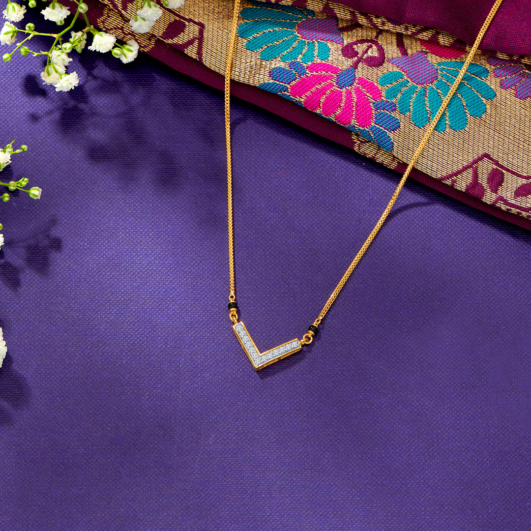 This Simple Unity Mangalsutra is made in 22 Karat (916) BSI Hallmarked Purity of Gold. Jewellery comes with inscription of Gold Purity , Jeweller's Identity Name.This is perfect for casual wear and ideal for festive gifting.