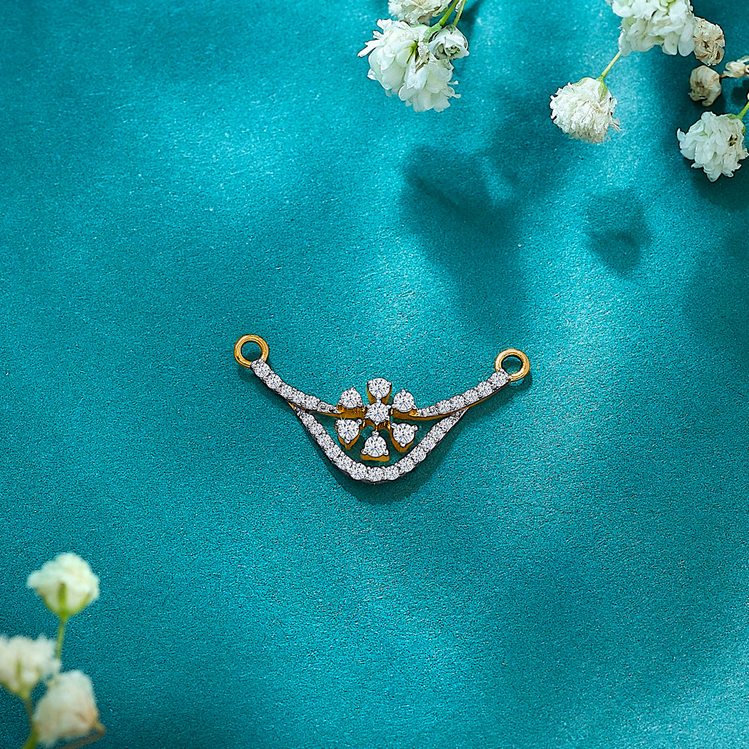 Smiling Floret Yellow Gold & Diamond Tanmaniya Mangalsutra For Women