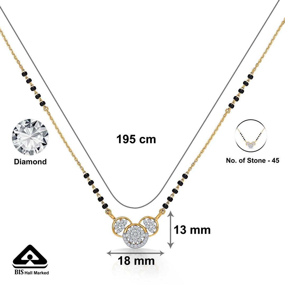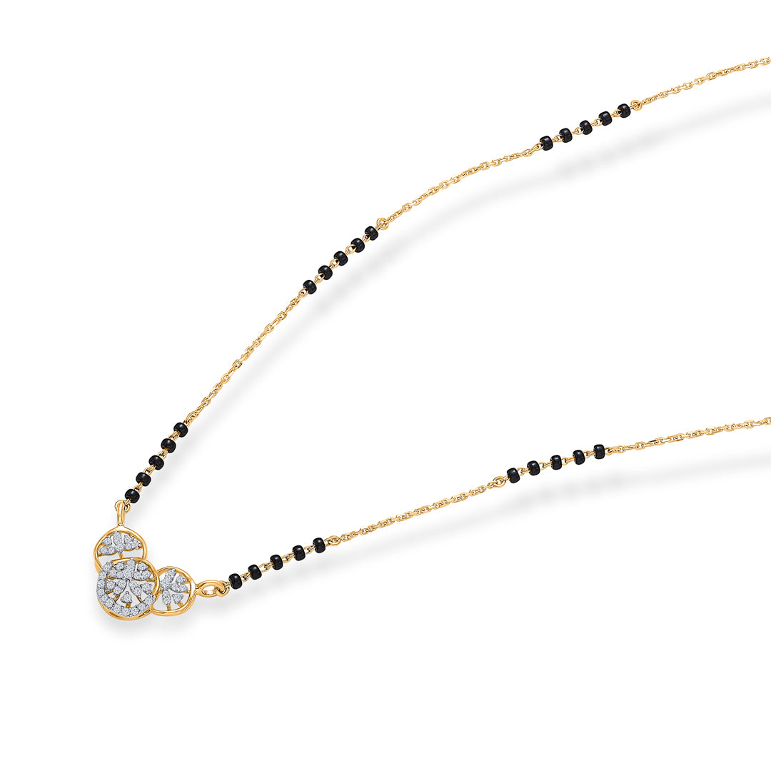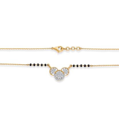 A perfect fusion of tradition and modernity, this mangalsutra reflects eternal love and harmony. The interlinked circles signify unity and completeness, while the classic black beads add cultural depth.