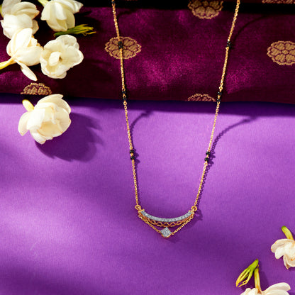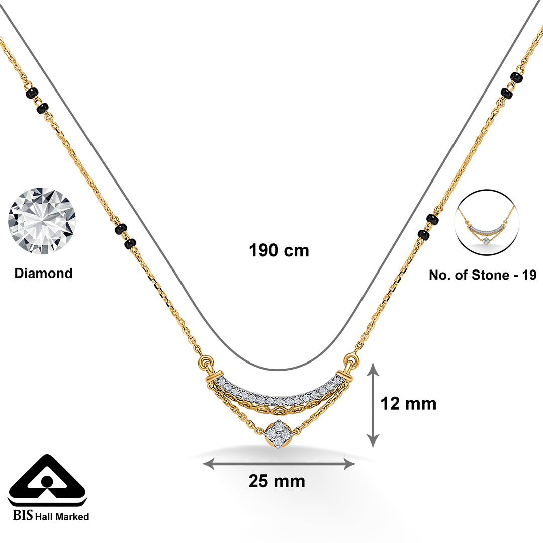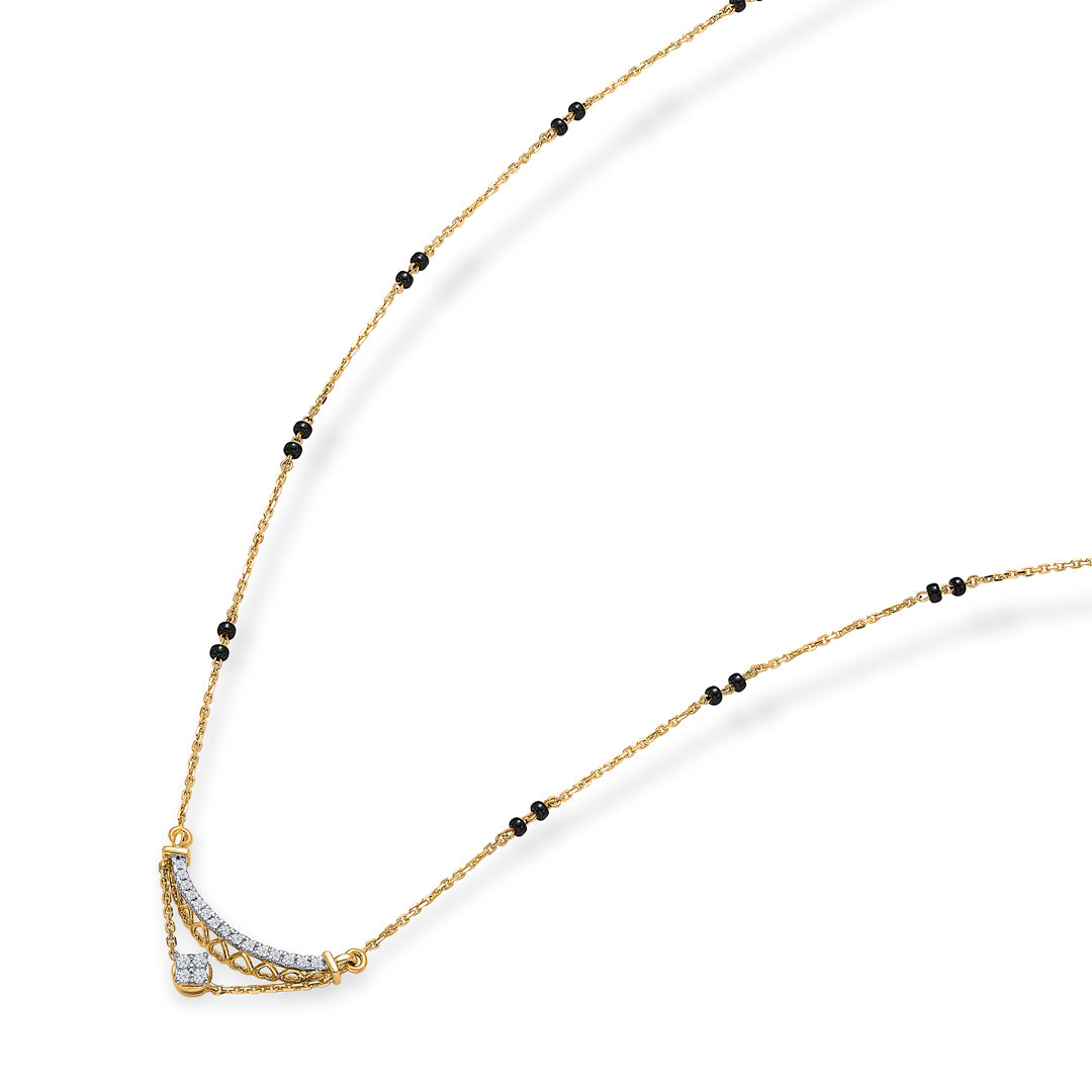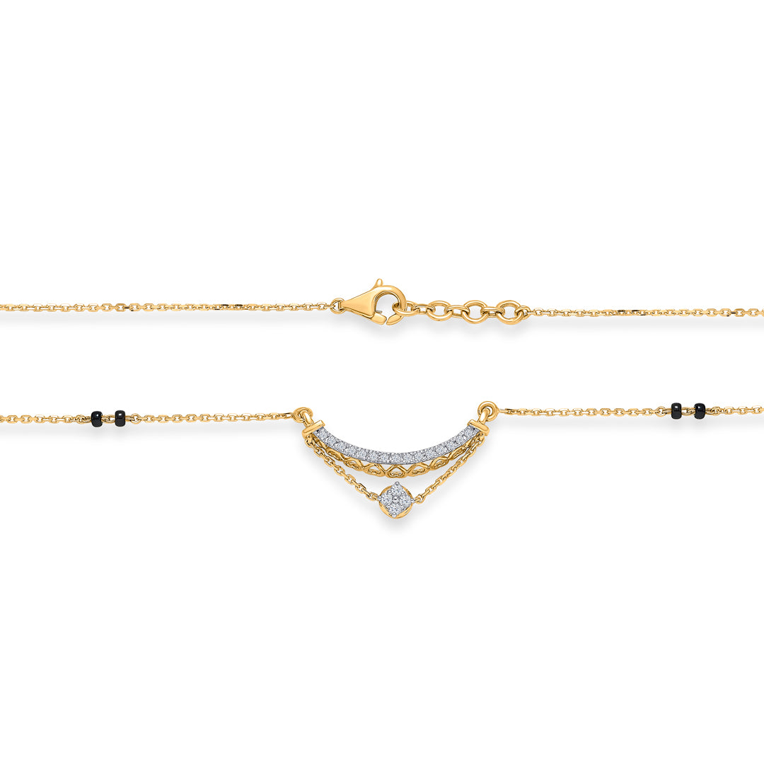 Elevate your elegance with this stunning diamond mangalsutra, crafted for the modern woman who values tradition with a contemporary touch. The shimmering diamonds add a radiant sparkle, perfectly complementing the classic black beads.