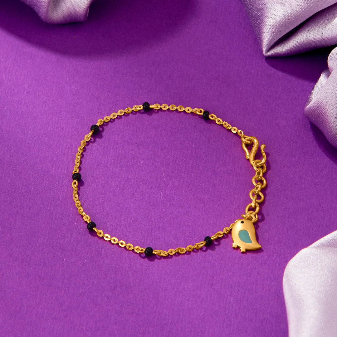 Check out our 22 Karat (916) Gold Yellow Kids Bracelet. It's ideal for little one as a special gift. Great for birthdays, Baby Shower, this Gold Kids Bracelet is made to be treasured. It's versatile enough for both festive and casual looks. You'll receive it in secure, tamper-proof packaging, ensuring safety and peace of mind. Additionally, it comes with a lifetime warranty and a convenient buyback policy at our stores across India, making it the perfect thoughtful gift.,