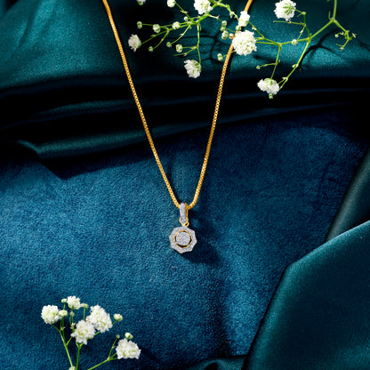 This modern and minimal pendant is designed for effortless elegance. With its sleek and understated design, it adds a touch of sophistication to any look. Perfect for everyday wear or special occasions.