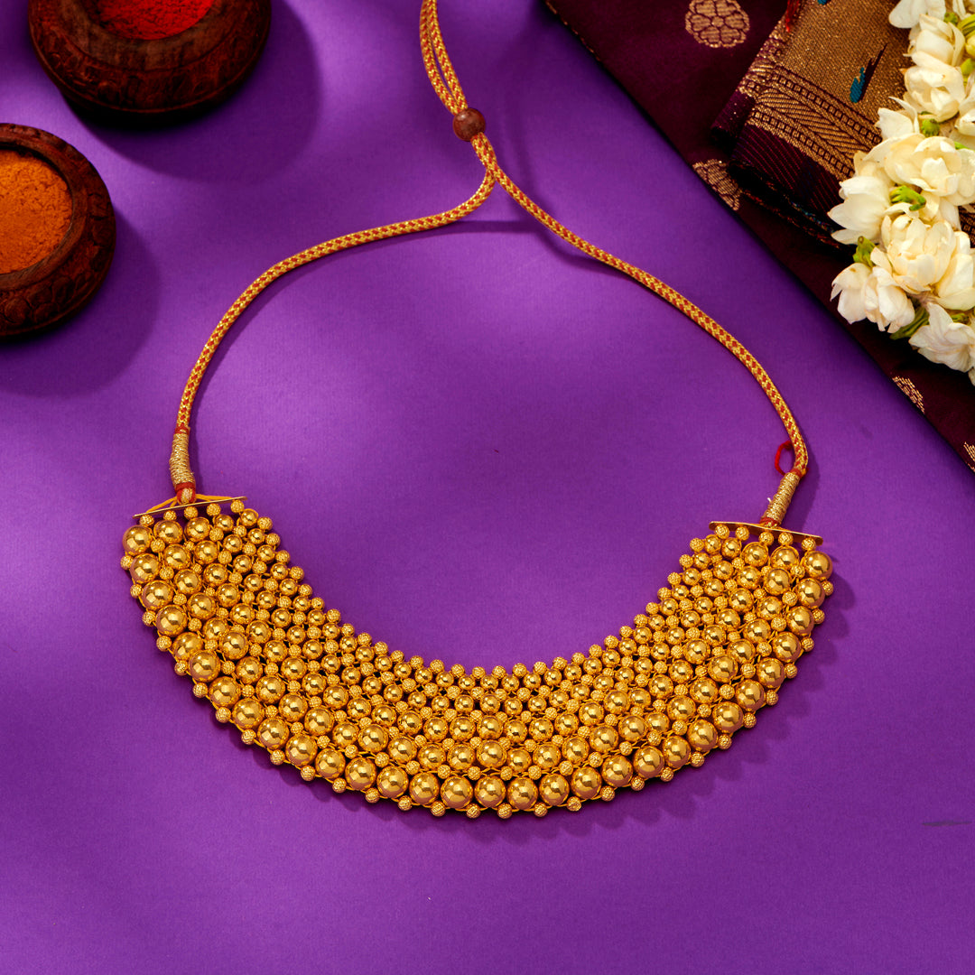 Check out our 22 Karat (916) BIS Hallmarked Yellow Gold Swarajya Short Necklace. It's ideal for daily wear or as a special gift. Great for birthdays, anniversaries, or Rakshabandhan, this BIS Hallmarked Swarajya Short Necklace is made to be treasured. It's versatile enough for both festive and casual looks, adding elegance to any outfit. You'll receive it in secure, tamper-proof packaging, ensuring safety and peace of mind. Additionally, it comes with a lifetime warranty and a convenient buyback policy at our stores across India, making it the perfect thoughtful gift.