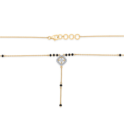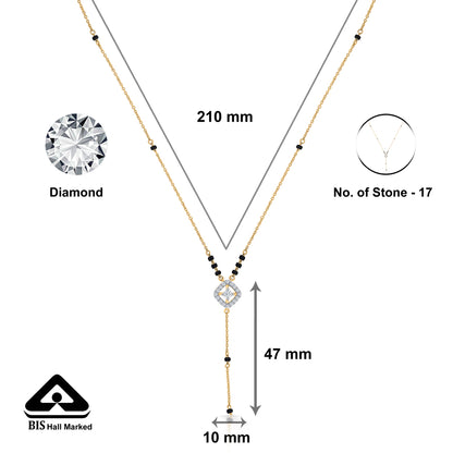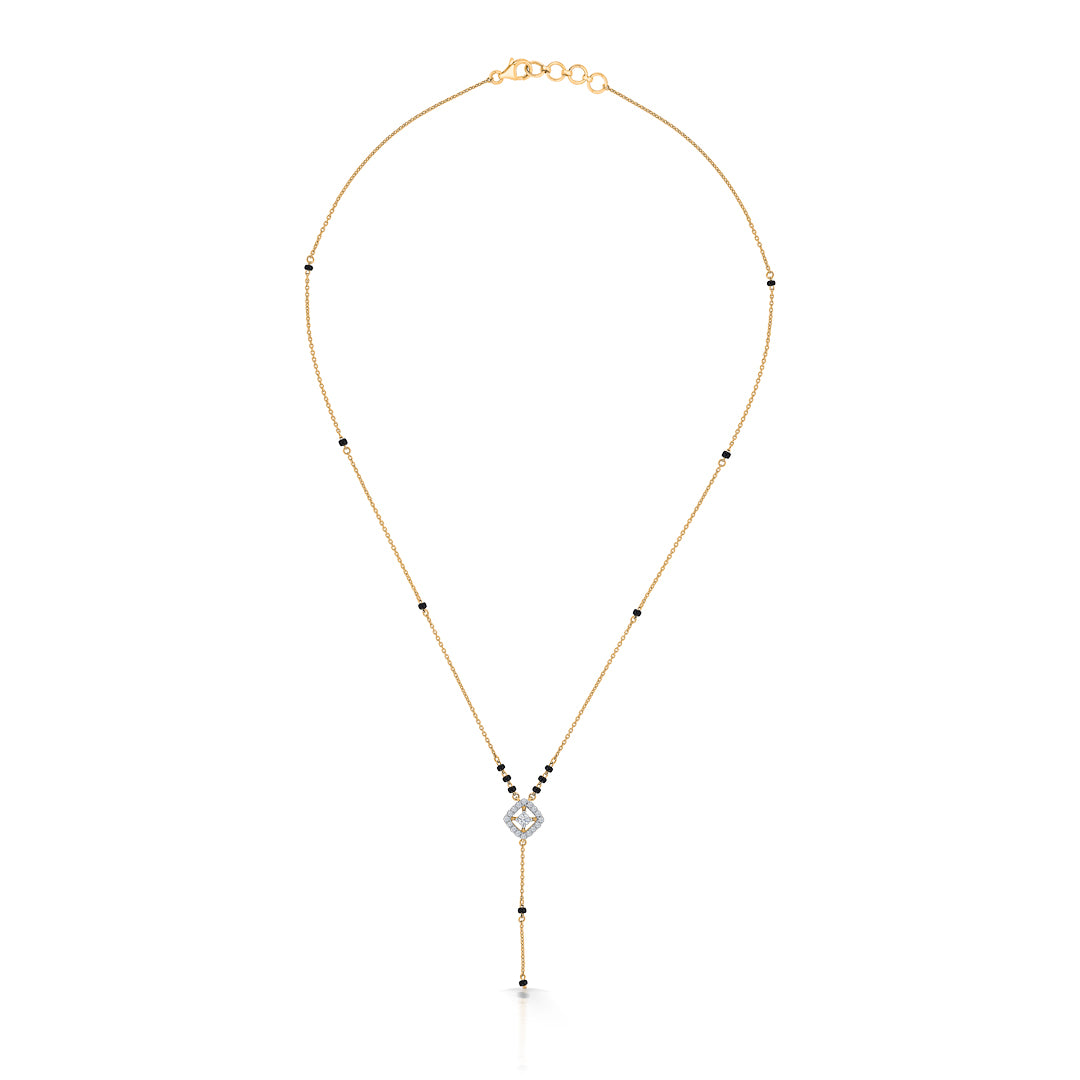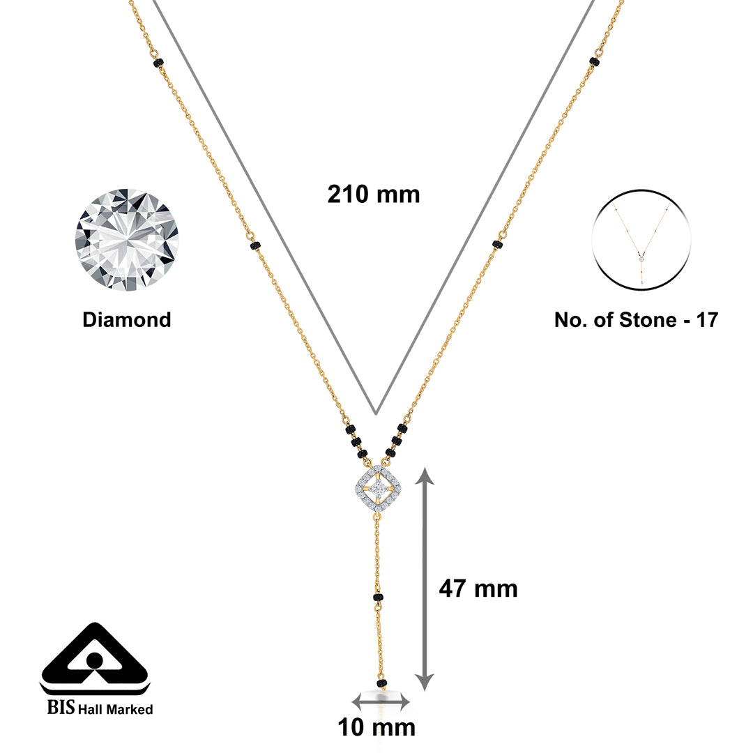 Check out our 18 Karat Gold & Diamond mangalsutra, perfect for every woman. With BIS-certified purity and adorned with VVS-FG Certified clarity diamonds, it's ideal for daily wear or as a special gift. Great for birthdays, and anniversaries, this Mangalsutra is made to be treasured. It's versatile enough for festive and casual looks, adding elegance to any outfit. You'll receive it in secure, tamper-proof packaging, ensuring safety and peace of mind. Additionally, it comes with a lifetime warranty and a convenient buyback policy at our stores across India, making it the perfect thoughtful gift.