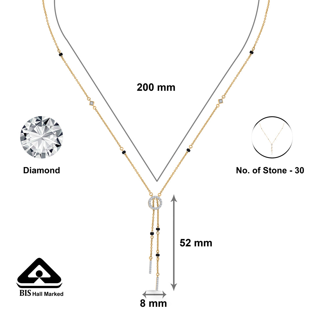 Check out our 18 Karat Gold & Diamond mangalsutra, perfect for every woman. With BIS-certified purity and adorned with VVS-FG Certified clarity diamonds, it's ideal for daily wear or as a special gift. Great for birthdays, and anniversaries, this Mangalsutra is made to be treasured. It's versatile enough for festive and casual looks, adding elegance to any outfit. You'll receive it in secure, tamper-proof packaging, ensuring safety and peace of mind. Additionally, it comes with a lifetime warranty and a convenient buyback policy at our stores across India, making it the perfect thoughtful gift.