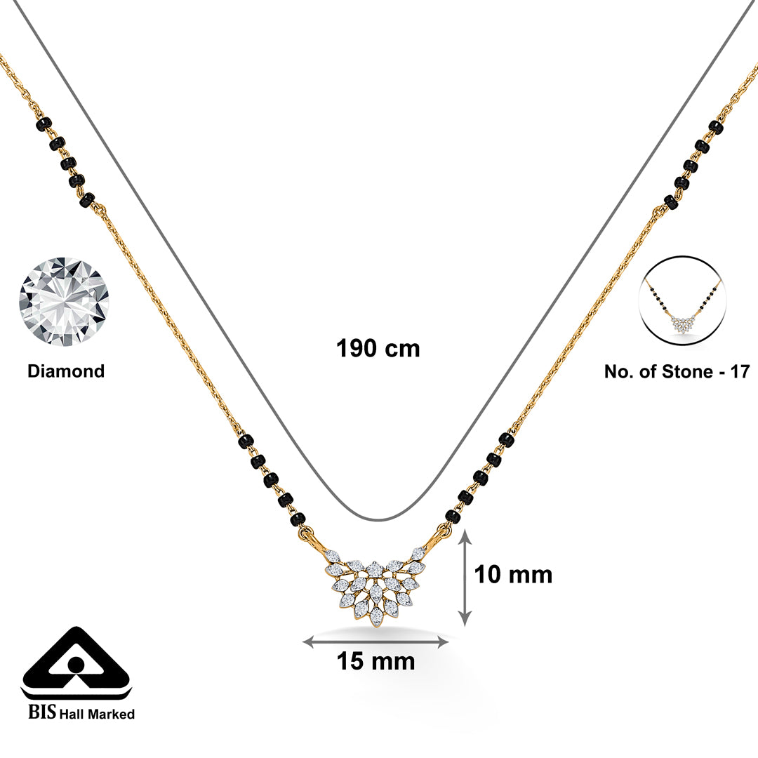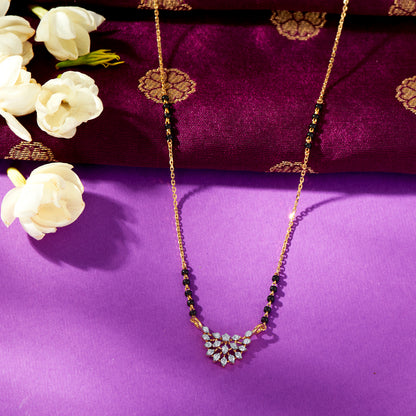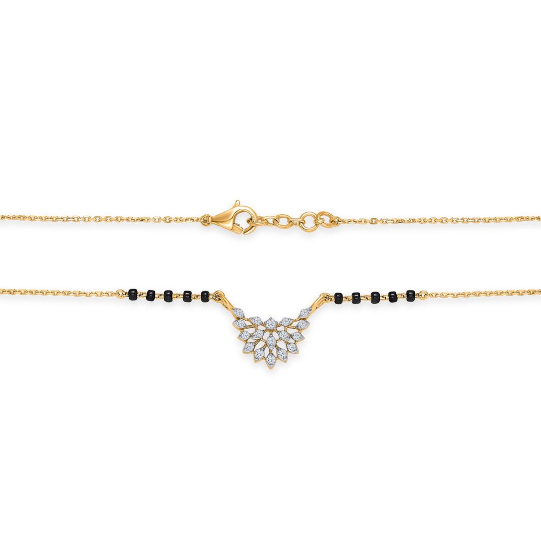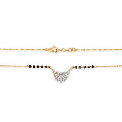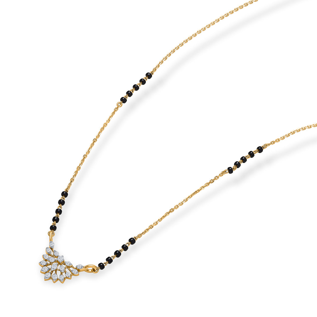 Celebrate timeless elegance with this floral mangalsutra, designed for the modern woman who cherishes tradition. Delicate floral motifs blend with classic black beads, symbolizing love and harmony.